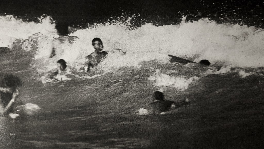 I had already gifted the last toe on my right foot that i had saved especially for this occasion. Others had gifted an eye, an ear or even a limb. Another man, a tongue. In return the celestial beings had embodied us for that day and had made us invincible and electric for the night of conquests. We had been preparing for this moment since we were young boys. The other men in the water beside me had now started to scream in anticipation. I started to feel the shifting sand beneath my feet and egged on by the voices behind us. We started to wade further into the deep, shoulder first, to break that impending wall of water. Startled by an excited howl i had looked over my shoulder and found the remains of a skeleton, that by now had the flesh entirely washed off its bones, bracing itself for its last clash with the waves. I felt the pull of currents swirl and grab on to my ankles as i listened to the rising growl of what was lurking ahead. The men beside me had disappeared and as i stood alone looking up at the shadow swallowing me. i could swear i felt sweat run down my leg beneath the waters. Darkness.