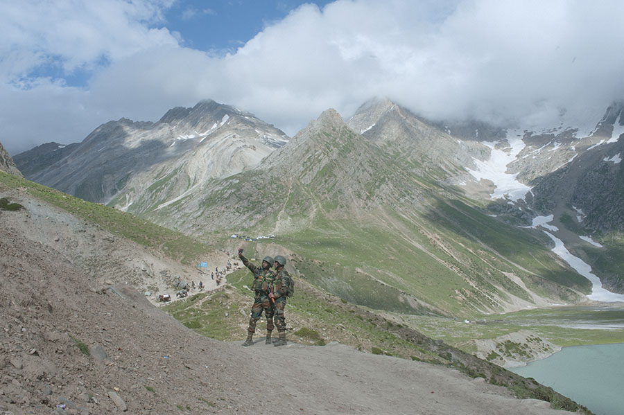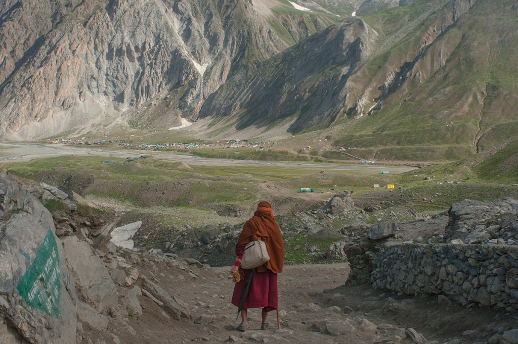 Tents at many places were left open without anyone guarding them anymore. We walked with elderly Sadhus, devotees, few pilgrims from southern Indian states, and village women walking barefoot on the freezing earth, all were seen making it slowly through this old, revered way. We experienced a stark change in the way the most beautiful landscape greeted us but in people, who one by one were leaving carrying their tents, leaving the land empty and sooner, for a rumour floating in the air that the war is going to happen. This news came at a time when I and Rasool entered the holy waters at Sheshnag, a word came loud and clear possibly directed towards us from the passing by army men. Leave.