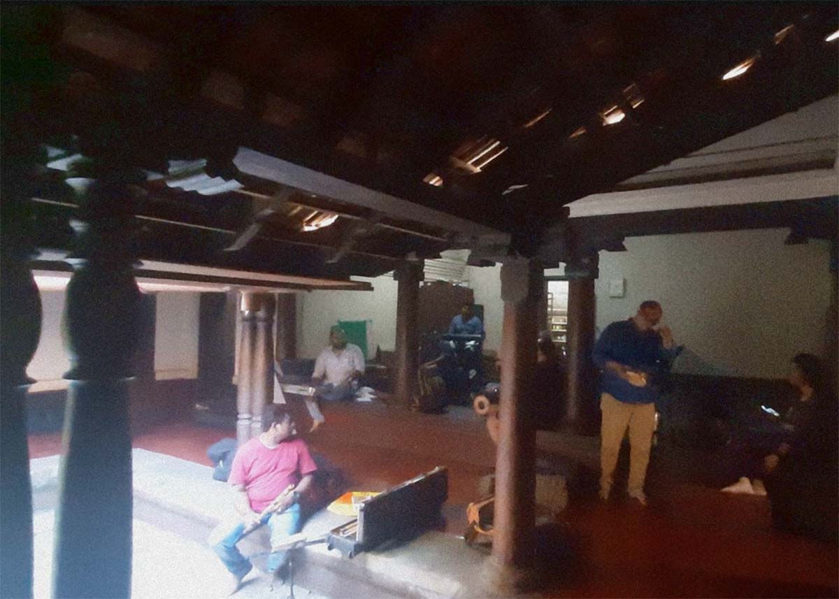 It all happened on one hot afternoon. The day when heat had pressed the masses to their home vaults and none could be seen outside. Suddenly, out of nowhere the sounds of Mridanga and Guitar started alluring me out of dormancy. From one, then a couple and soon a whole line of instruments joined in, warming up like players do before a big match. Is it really coming from downstairs? Perplexed! While In no time our ancient Kerala home started emitting ragas out of its old walls. That weary, indolent noon had suddenly transformed into hope of a delightful evening. I left my work, took my camera and came down to see a whole band of 10 or more people spread out, involved in practicing, enjoying, laughing, moving in and around this traditional Kerala house. It felt like a spectacle from behind the scene of a film. It also woke along with me all the workers and even the patients of “Asokalayam ” (where I stayed), peeking from their windows, and soon a few more arrived to bathe in the sounds of music this band ‘Raganeethi’ had started playing.