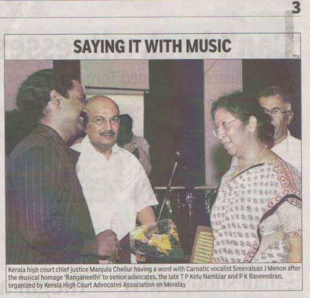 Being a lawyer may not help us in our music as these are totally different vocations. However, being a musician has helped us being a lawyer. Years of experience in performing on stages have inculcated in us a confidence to face the audience. The performance of a litigating lawyer in a court of law is also watched by a group of people including the judge. Here the experience of performing on stage has helped us to perform in court halls.