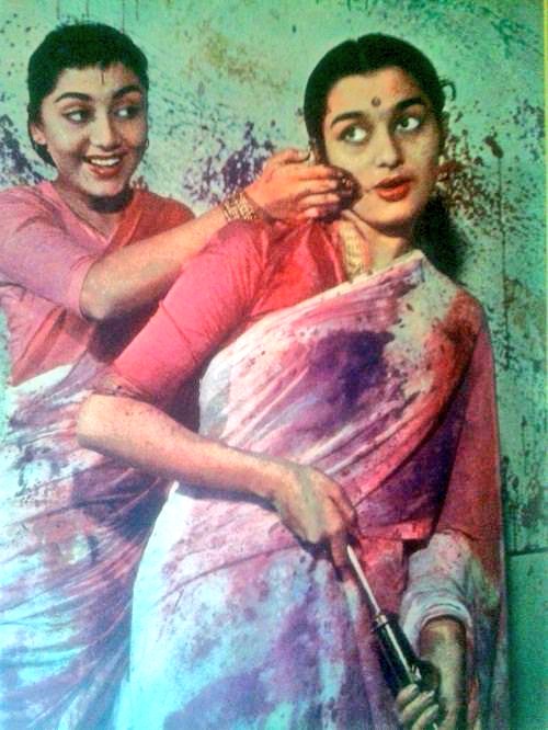 1960s :: Actress Sadhana Playing Holi With Asha Parekh