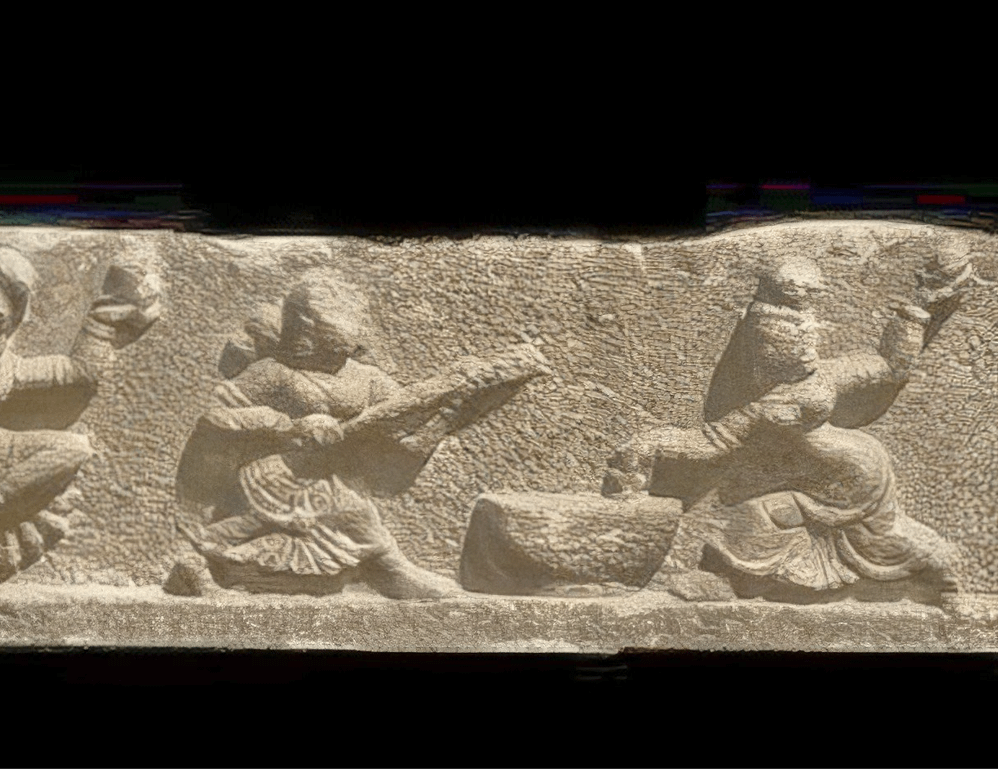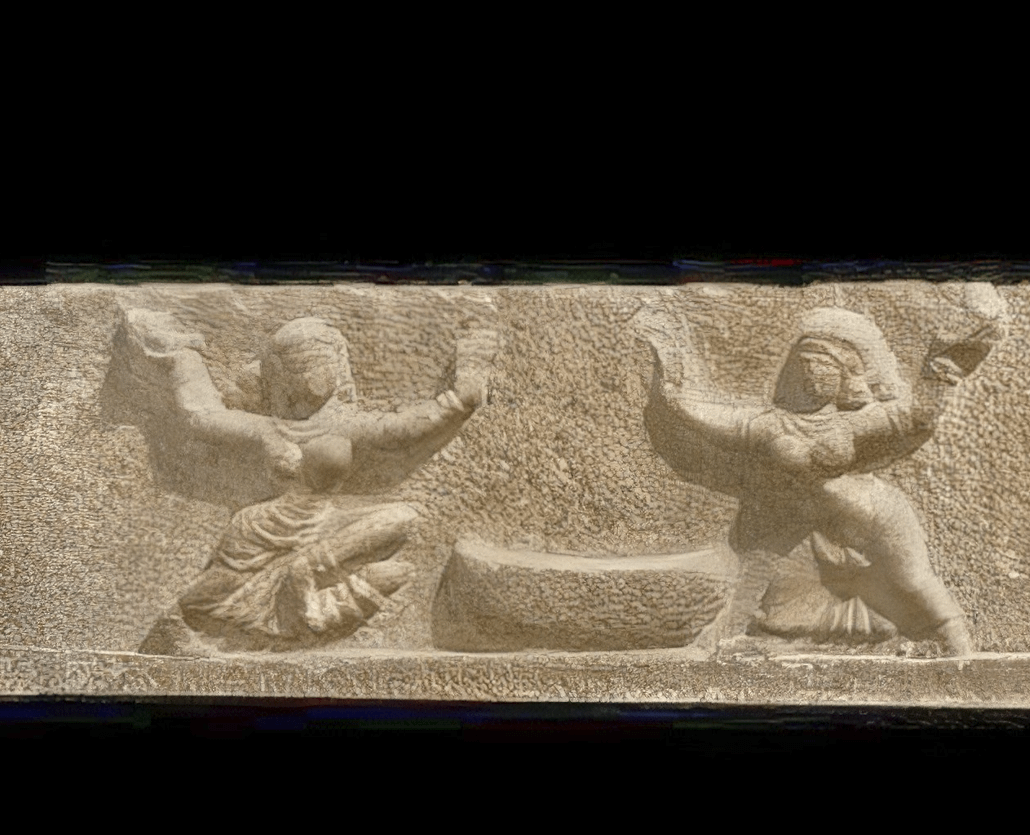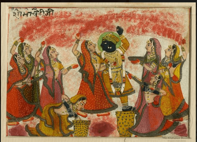 In a second picture from Chandraketugarh, Bengal, woman can be seen playing music with garlands around her neck. (Similar to the inscription found in Sitabenga) Suggesting that around 2200 years ago, Holi may have been primarily a women’s festival.