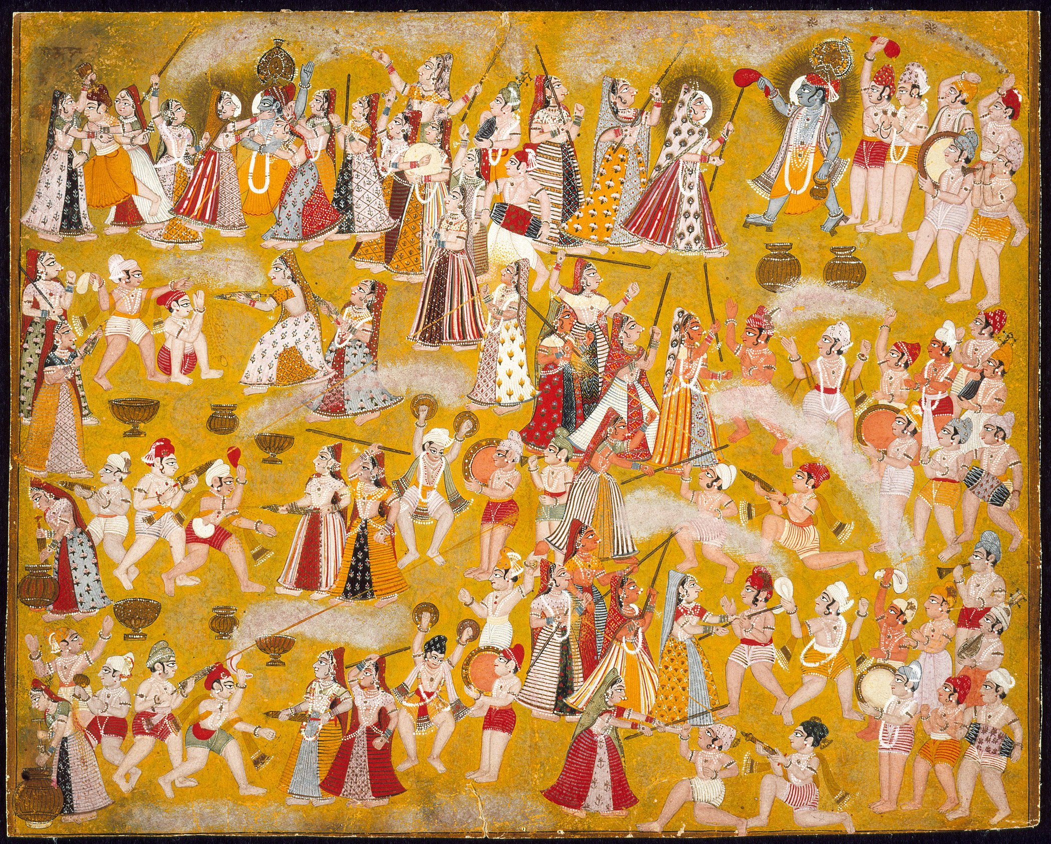 Krishna and Radha Celebrating the Holi Festival with Companions