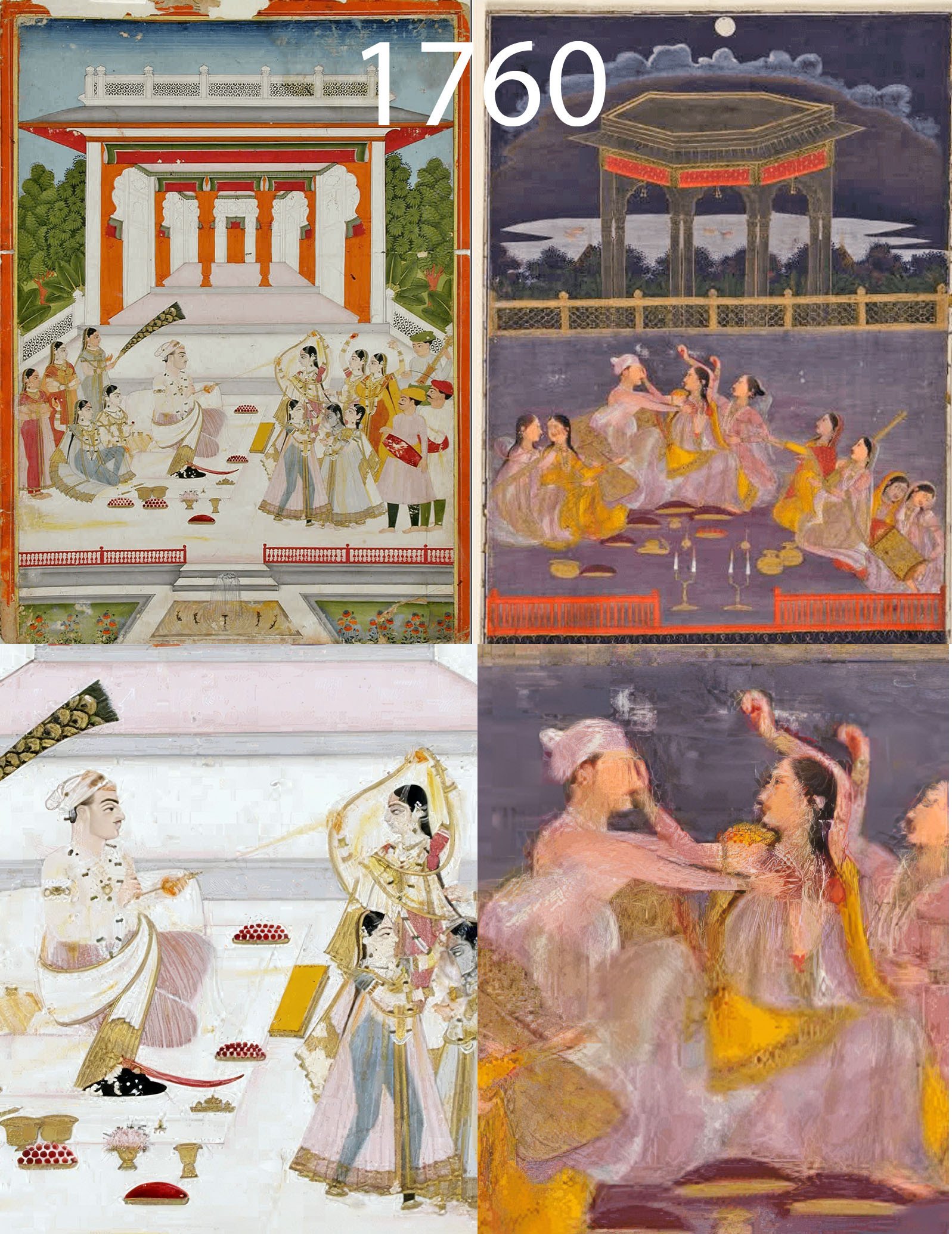 King and Prince playing Holi with their consorts in Farukkhabad and Deccan region