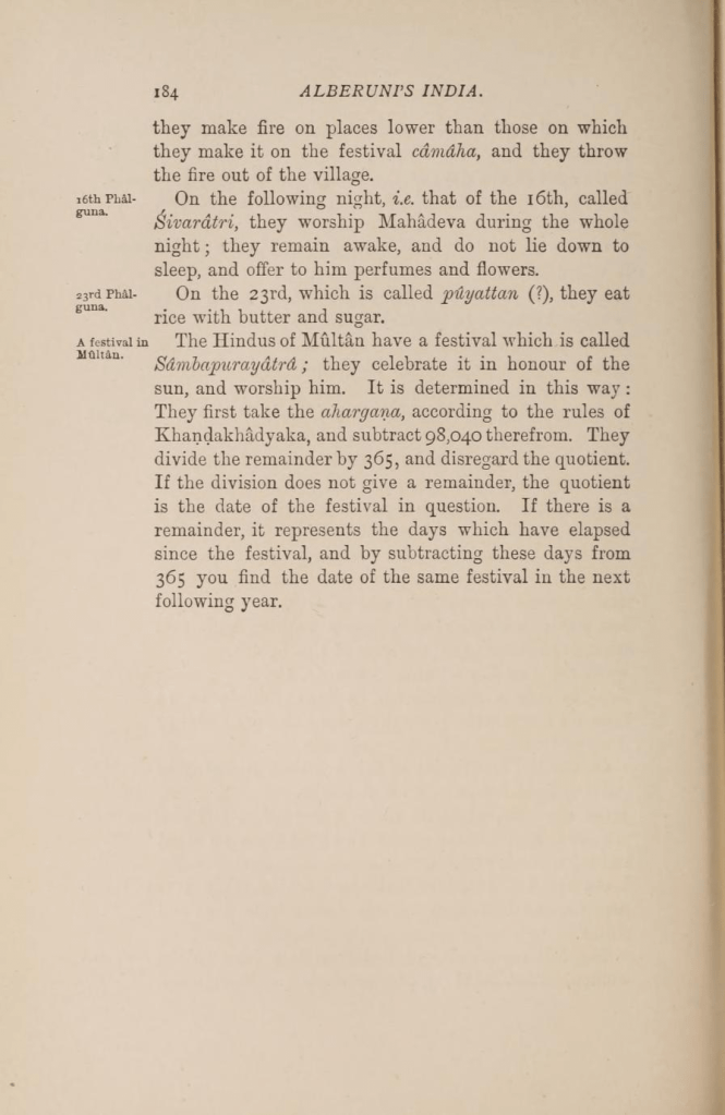On the following night, i6. that of the 16th, called Śivaratri, they worship Mahadeva during the whole night; they remain awake, and do not lie down to sleep, and offer to him perfumes and flowers.