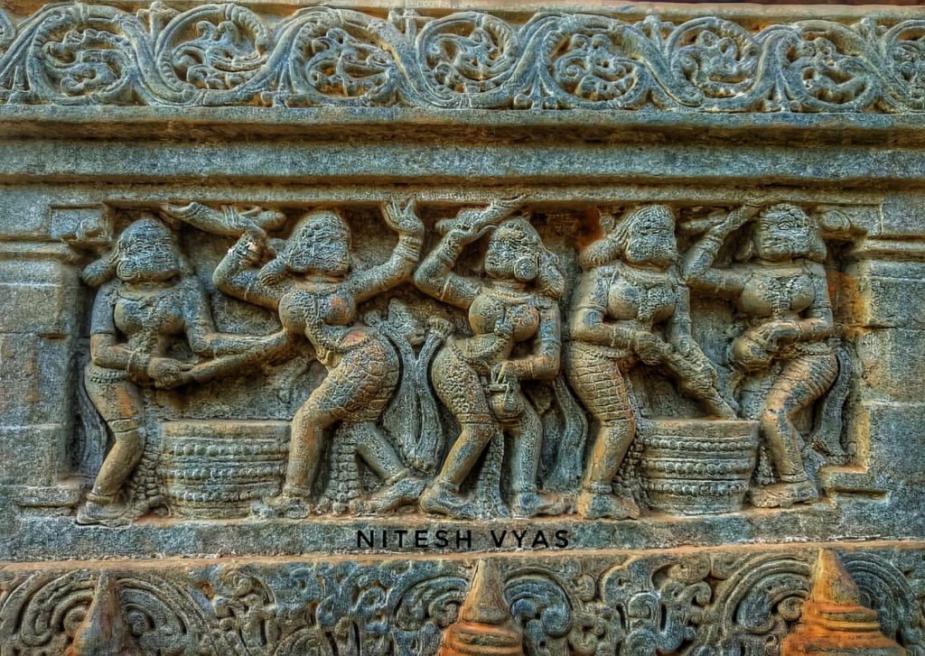 A stunning carving from the Holi festival at Mahanavami Dibba, Hampi, Karnataka captures the essence of the celebrations. King Krishnadevaraya commissioned the building of the temple in 1513 AD. The exquisite walls feature intricately carved statues depicting women joyfully playing Holi with pichkaris and tubs.