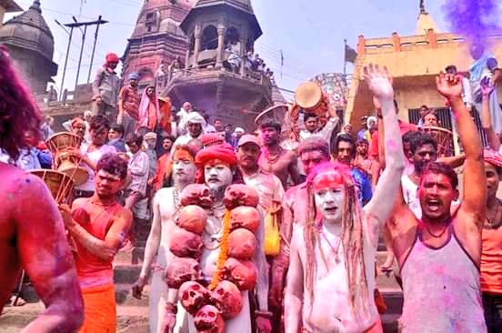 Holi at the sacred Manikarnika Ghat, Varanasi.