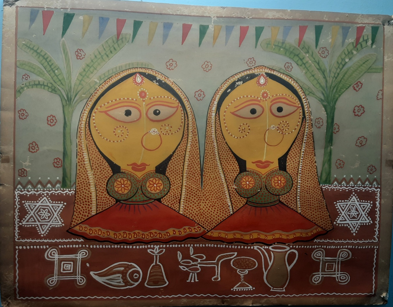 image of painting of demons on the wall of a gond house
