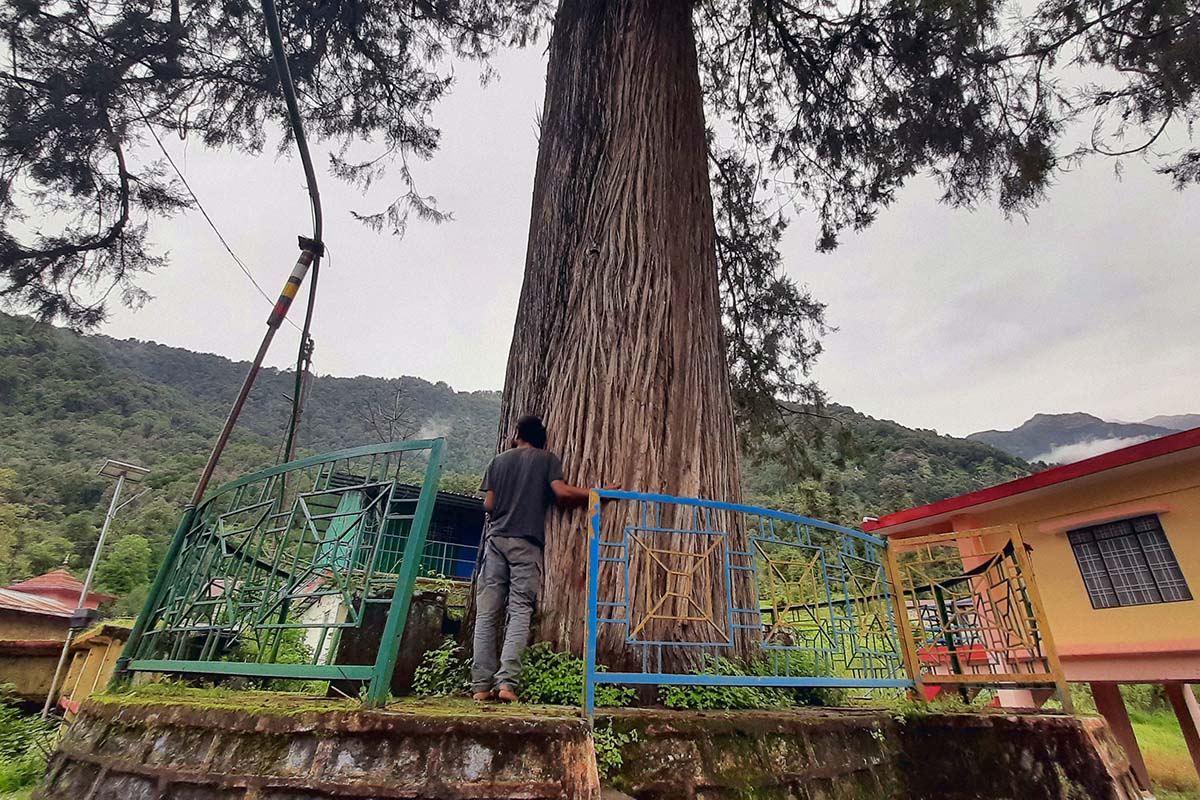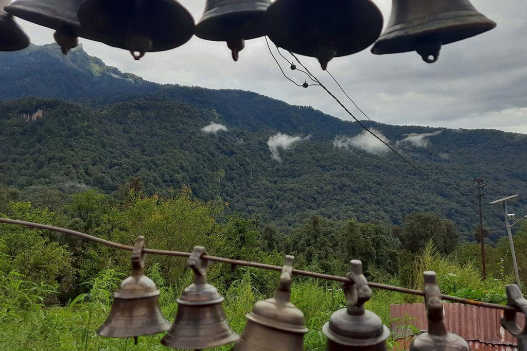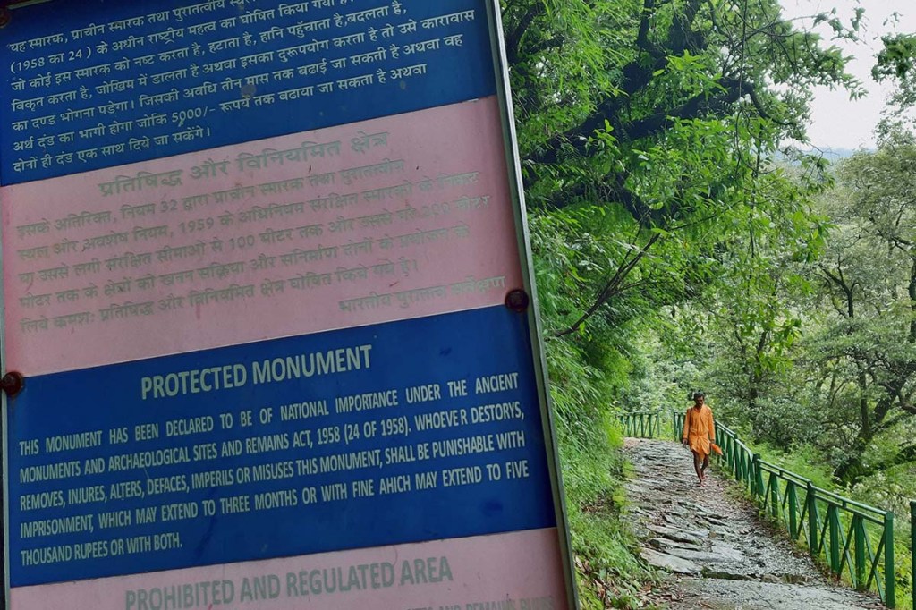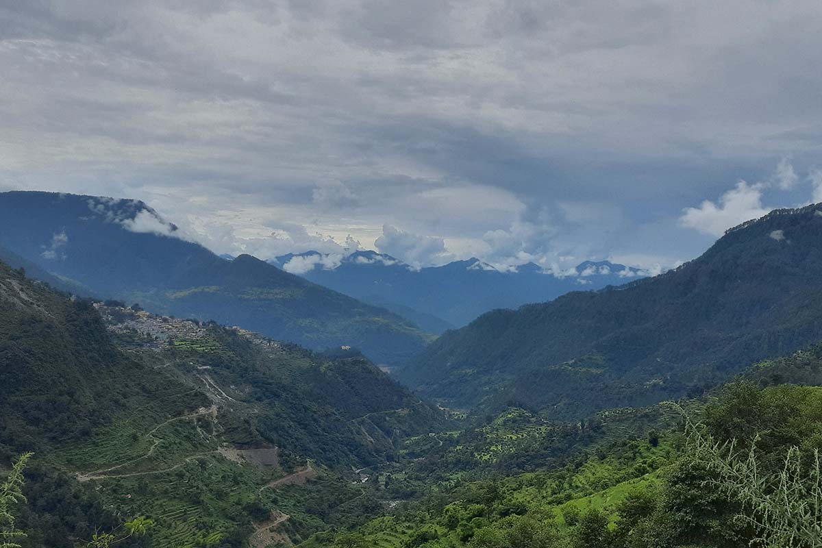He is from a nearby village. He used to be very angry, used to drink a lot, abuse all day and beat people up on this road only, few months ago during a procession of a local deity, he kept kicking the drummer that walked in front of the deity, abusing all through the procession and threw the drum from the mountain. He passed out that night and since the next day he is out, yelling, crying, god knows what he eats, where he goes, please you can go from here. There is no need to panic or feel bad.